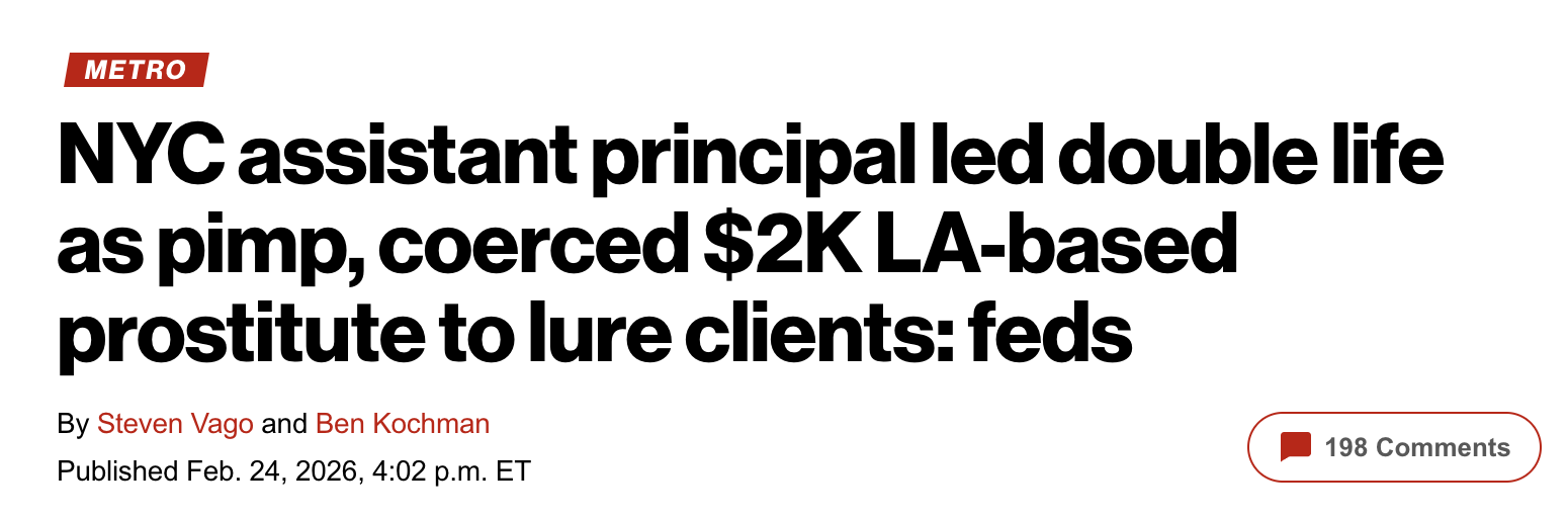 年薪17万美元,在校园里负责安全与技术管理;暗地里,却被指跨州操纵卖淫活动、为客户开价每小时2000美元。纽约皇后区一所公立小学的助理校长,被联邦检方指控过着极其荒唐的“双面人生”。