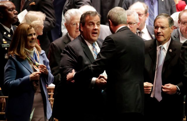 新泽西州前州长克里斯·克里斯蒂(Chris Christie)与新州长菲尔·墨菲(Phil Murphy)握手。