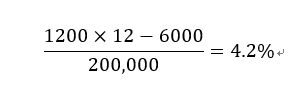 如果用现金全款购房(即不考虑贷款)且不考虑房价上涨的因素,仅考虑租金收入,那么投资净回报应当在5%-6%左右才算是划算的买卖。这个投资净回报的计算方式是:(租金收入-养房支出)/购房价格(养房支出:指房屋维护费、房屋管理费、地税、租金、广告费、法律诉讼费等一切由此房产产生的费用)举例来讲,以$20万购买一套房产,月租金$1200,各项支出一年约$6000,以最好的情形,即一年全部租出计算,收益率为: