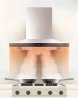 北美30寸网红烟机,专为美国橱柜设计。90°全自动隔烟屏,有效控制油烟扩散。30”超宽进烟口,吸力均匀覆。6平方尺 超大拢烟面积,使用前后左右炉头都不跑烟。下置式双劲离心风机,动力更强劲,吸排更顺畅!