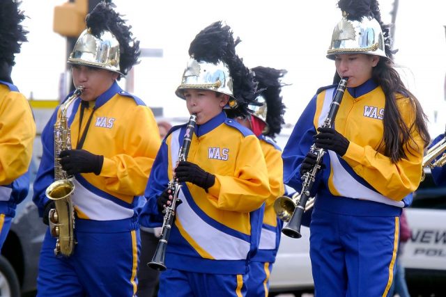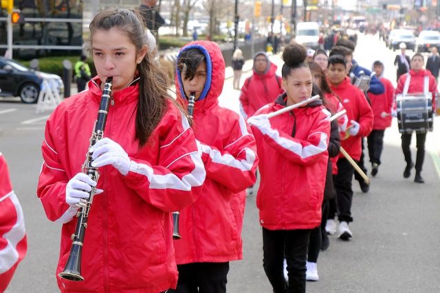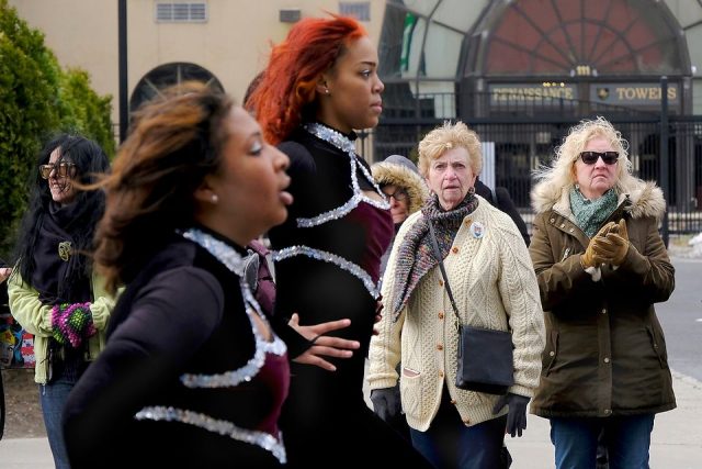 Malcolm X Shabazz高中游行乐队是游行队伍的表演者。