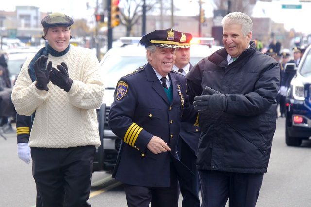 Essex County执行委员Joseph DiVincenzo Jr.在游行期间与Essex County警长Armando Fontoura一起加入到游行队伍中。