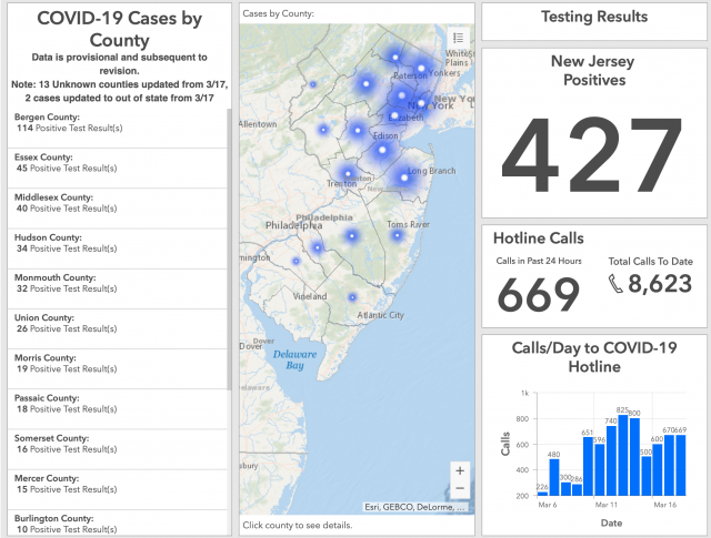 此外,新泽西州府新型冠状病毒求助热线(1-800-962-1253或1-800-222-1222)24小时开通,已累计收到8623个电话,17日-18日,州府收到669个求助电话。新泽西州卫生厅官网(