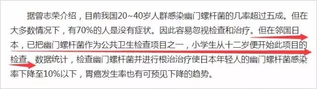 但日本很早已把幽门螺杆菌作为公共卫生检查项目之一,小学生从十二岁便开始此项目的检查。