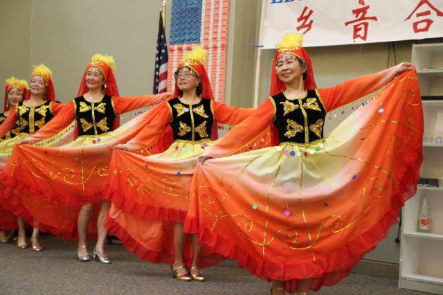 主持人张怡玲优雅端庄,她向老人们娓娓道来乡音的历史。乡音合唱团有18年历史,近几年发展很快,由包括10多位专业艺术家在内近200人组成了合唱团、管弦乐团、舞蹈、旗袍等团队。艺术总监为国家一级指挥张椿和。乡音每年以各种方式服务中美社区,演出10余场。