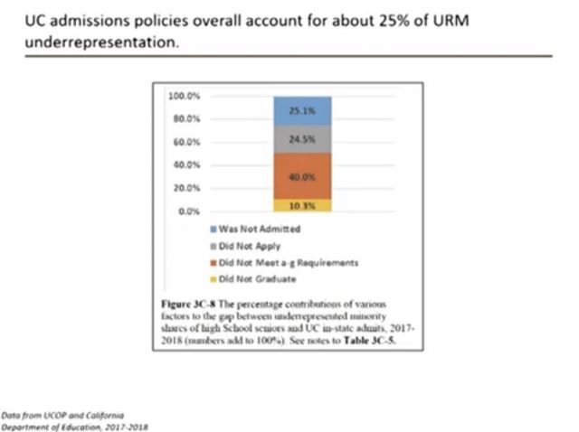 第四、加州大学非裔和西裔学生入学比例不高,多元化不足75%的原因是非加州大学可以控制的。是这些社区中小学教育落后,GPA低等原因所造成的。在加州所能影响的这25%因素中,标准考试根本不是重要原因。取消标准考试并不能提高加大的多元化。