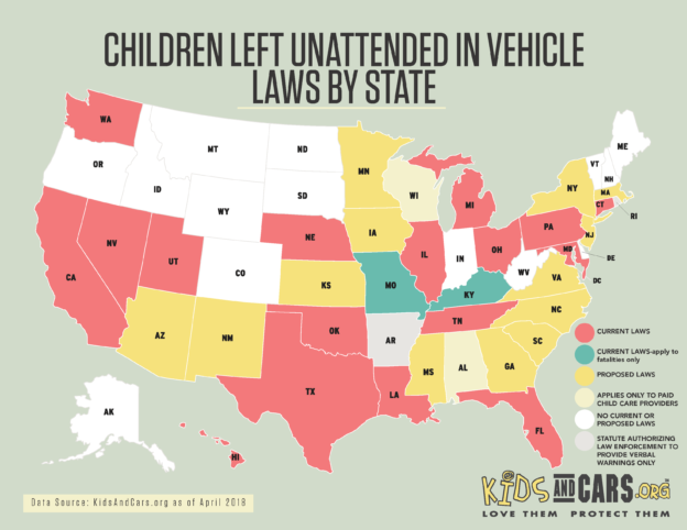美国20个州有关于无人看管孩子的法律;10个州有针对留孩子独自在车里,看到了如何处理的法律;很遗憾的是,新州和其他13个州在过去有相关法律的提议,但都未通过。