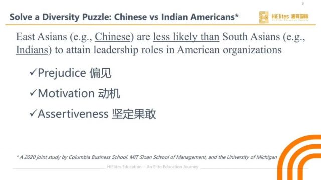 丁老师引用哥伦比亚大学商学院、MIT斯隆管理学院与密西根大学的一份联合研究报告,一针见血地指出,所谓的“亚裔天花板“对于以印度、巴基斯坦为代表的南亚裔根本不存在,但对于华裔为代表的东亚裔来说却明显存在。而部分关于背后原因的研究结果更是出人意料。