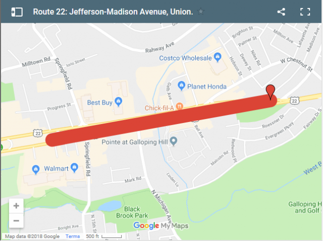 22号公路在Union的这个臭名昭着的交叉口的中间和左侧车道转到22号公路相反方向的掉头转弯地方有几家商店。在这里掉头转弯的司机表示他们的车辆具有足够的动力快速的进入转向车道。