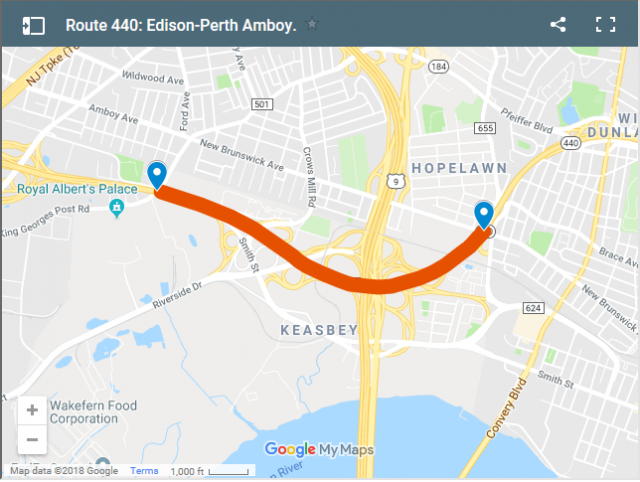 离开I-287后,司机都知道这是440号公路最堵的一段。440号公路这个路段是一段弯路,包括9号公路、花园州公园大道的出口,也有通往Staten Island外高架桥的出口。