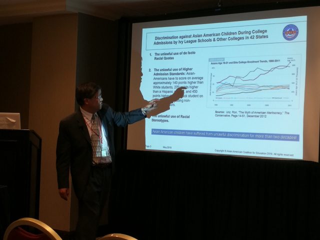 2015年5月,AACE的创始人联合了64个包括华裔、印度裔、韩裔、巴基斯坦裔和其他亚裔在内的美国亚裔团体向美国教育部和司法部递交申诉,要求他们调查哈佛大学针对美国亚裔申请学生的录取歧视。这是有史以来亚裔组织在追求平等教育权利方面所采取的最大规模的联合行动之一,目前已经获得美国司法部的正式调查。