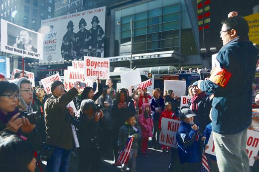 在纽约时代广场抗议美国广播公司(ABC)《吉米秀》节目的辱华言论