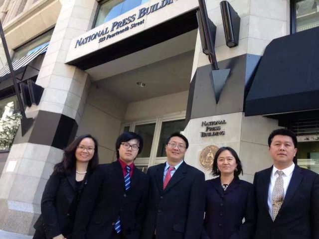 李春燕、欧阳了寒、赵宇空等于摄于美国国家新闻俱乐部