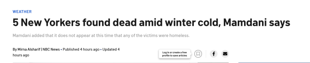 目前,这 5 起死亡事件是否与极寒天气直接相关,仍有待法医和警方调查。但正如马姆达尼所说,这场风暴再次提醒纽约人:严寒并不只是“不方便”,它可能是致命的。