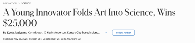 当大多数同龄人还在将折纸视为课余游戏时,来自纽约市的14岁华裔少年迈尔斯·吴(Miles Wu)已经在这项古老技艺中发现了改变世界的可能性。凭借对三浦折法(Miura-ori)的创新研究,他不仅证明了单张纸张可承受自身重量10000倍的惊人强度,更赢得了全美顶尖中学STEM竞赛——赛默飞世尔科技青少年创新者挑战赛的最高荣誉,以及2.5万美元奖金。