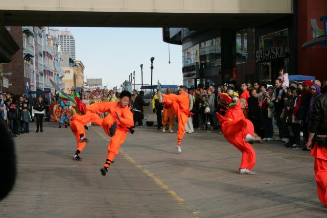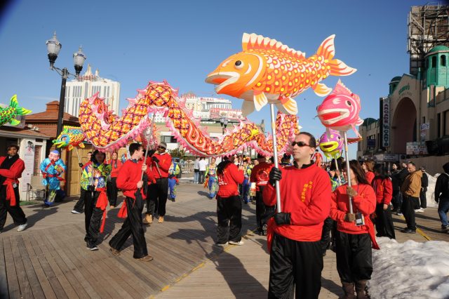 前任主席冯淦华先生热心宣传中华文化,个人出资在2009年和2010年连续两年举办了新泽西州大西洋城第一、二届农历新年花车大游行。2009年花车游行在大西洋城贯穿东西的主干道-大西洋大道(Atlantic Ave)上隆重举行,2010年花车大游行在著名的海边步行大道上举行。浩浩荡荡的游行队伍、十余辆各具特色的花车、舞龙舞狮、中国戏曲和舞蹈服饰、少林功夫等中国传统文化,吸引了数以千计的居民和游客驻足观看,为大西洋城增添了一道亮丽的多元文化的特色。值得一提的是,在第二年的花车大游行活动中,当地的韩裔社区、越南裔社区积极派出花车及舞龙舞狮队参与。2010年广东省人民政府侨务办公室更是赞助了一辆花车参与其中。100多个大红灯笼在中心城区沿街高高挂起,整个大西洋城呈现出一派欢度中国新年的喜庆气氛。