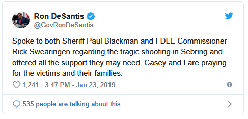 “这对Sebring、Highlands County和佛罗里达州来说是恐怖的一天,”州长Ron DeSantis说。