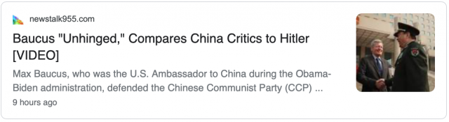 美国中文网报道,美国前驻华大使马克斯•鲍卡斯(Max Baucus)周三将川普总统对中国的批评与希特勒时期的政治言论相提并论。