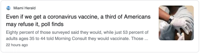 侨报纽约网报道,根据一项新的民意调查显示,超过三分之一的美国人表示自己可能不会接种新冠病毒疫苗。