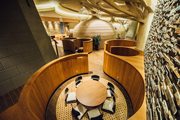 Island SPA&桑拿在设计上融入了西方简约、崇尚自然的现代设计理念,将这种韩国传统的封闭养生场所放置在了一个宏大开阔的场景之中。不同的桑拿房被设计成一个个海岛,大厅支柱被设计成了参天大树,人们在一个个桑拿房之间流连、在“大树”下休息,仿佛徜徉在大自然中,完全没有传统桑拿房那种封闭、压抑的感觉,呼吸都畅快了许多。