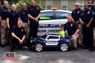 这些平日里不苟言笑的铁汉们在对待这个5岁小男孩时,展现了惊人细致与柔情的一面,他们特地定制了一辆迷你版“警车”送给他,满足他幼小心灵中当警官的愿望。