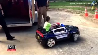 威廉坐上了“警车”,一路开着警灯,鸣笛警报器,威风凛凛地回家了。
