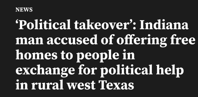 在美国德克萨斯州西部边缘,一场看似荒诞却影响深远的政治风波正在上演。一名自称计划竞选总统的印第安纳州男子,通过提供免费住房和每月5000美元津贴的方式,吸引黑人家庭迁入德州人口最少的县,被指控企图通过操纵选举"接管"这个石油资源丰富的县政府。此事已引发德州政府强烈反应,司法部长肯·帕克斯顿亲自提起诉讼,州长格雷格·阿博特也表示密切关注。