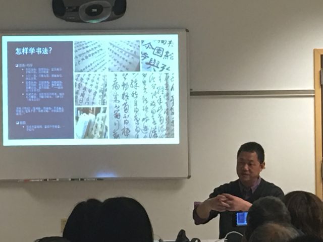2019年2月23日,猪年元宵节刚过,全美书法家协会在新州北部密尔本市,举行成立以来的第一次书法普及讲座活动。这次活动围绕“什么是书法”的主题,由书法家协会首任主席周士凌博士主讲。他从世界范畴的三大古老象形文字中唯一流传至今的汉字独特性,谈到书法这个汉字载体在毛笔书写下表现出来的艺术性展开讨论。指出书法中“法”包括笔法、字法、章法和墨法,再逐一展开学术探讨。