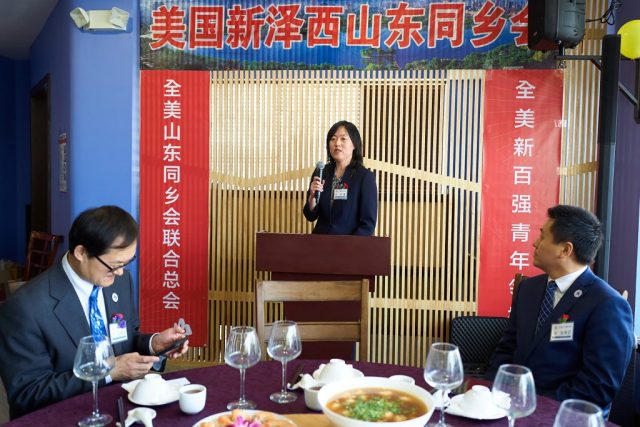新泽西博根郡郡长代表Ludi Hughes为总会,新泽西山东同乡会及新百强青年领袖代表颁发了贺状。Terry Lau (Marlboro)副市长致辞并和报告他在积极促进的新泽西和山东合作交流项目。