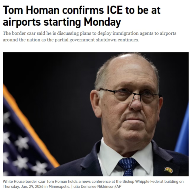 当前,国会两党仍未就拨款问题达成一致,国土安全部停摆持续。美国运输部长Sean Duffy已警告,如果僵局延续,情况可能迅速恶化。