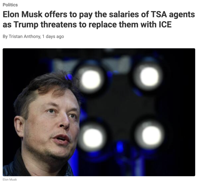 就在混乱持续之际,全球首富Elon Musk在社交平台X上发声,提出愿意为TSA员工支付工资,以缓解危机。