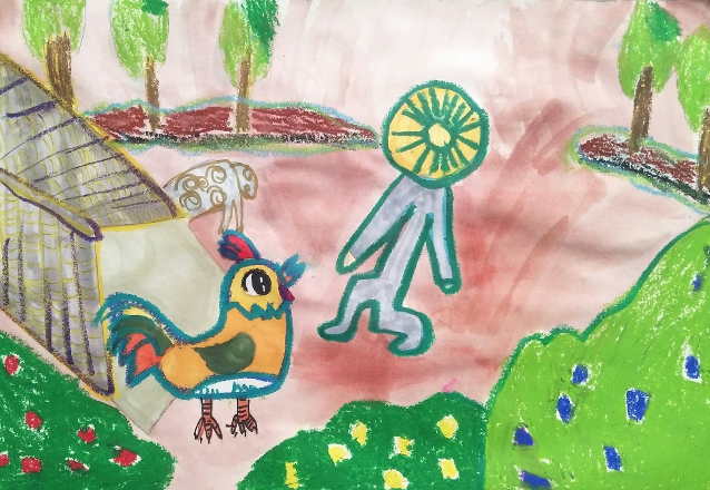 After that, the rooster did his duty and sang three times a day in the early morning. The villagers got up upon the crow of the rooster, began to work at sunrise, and returned home at sunset. They lived a peaceful farm life with ample food and clothing.