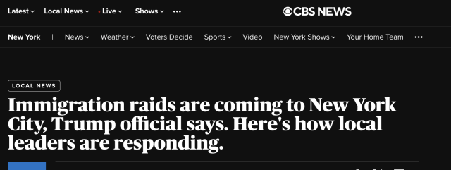 纽约市长埃里克·亚当斯试图在法律范围内与联邦政府合作:“我们的信息很明确。我们不会以任何方式与民事执法部门协调。如果他们加大力度是为了追捕危险的罪犯和暴力犯罪者,那么纽约警察局和我们的合作伙伴将协调一切与暴力相关的行动。”