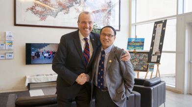 新泽西州长菲尔·墨菲(左)造访李振忠的美中科学文化体育中心。