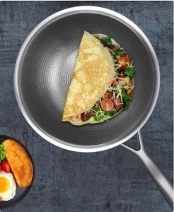 可以用铁铲的不粘锅!独有晶粒工艺,不沾涂层与食材不接触更健康。一锅多能,煎、炸、炒、焖、煮样样皆可;三层锅体工艺制作,导热更迅速,加热更均匀,炒菜效率更高。;不挑炉灶,适用于明火、烤箱、电磁炉、电炉、卤素炉和电陶炉。