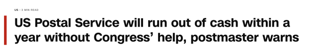 拥有约250年历史的 美国邮政署(USPS),如今正站在一个“关键时刻”。在最新的国会听证会上,邮政局长 戴维·施泰纳 直言不讳地警告:如果不立即采取措施,这家机构的现金将在不到12个月内耗尽,“大约一年后,邮政服务将无法投递邮件”。
