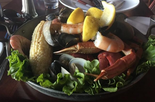 还真是的,在码头购物中心楼上就有一家不错的海鲜店,菲利普斯海鲜店(Phillips Seafood)。此时,大海边,沙滩上,风吹肚子呱呱响,吃海鲜才是王道。