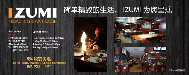 Izumi Hibachi Steak House地址:517 Route 23 South, Wayne, NJ