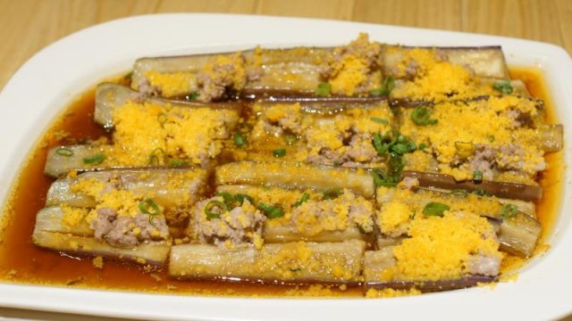 咸蛋黄茄子是许多客人喜欢的一道美食,既营养,又可口。大家不要被这咸蛋吓倒,以为是一道重口味的菜。事实上,这是道特色素菜。被碾碎的咸蛋黄均匀地铺撒在茄子上,大厨不过是轻轻下了些许盐巴。在品尝鲜辣的菜餚之后,吃上一口咸蛋黄茄子,口腔顿时焕然一新,味蕾又能继续敏锐地捕捉桌上每样菜式的真正滋味。蜀湘门第的“咸蛋黄茄子”是一道搭配辣菜的最佳素食小菜。