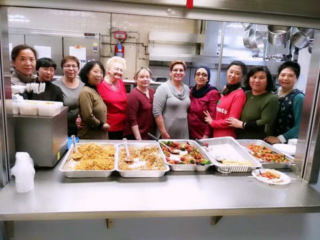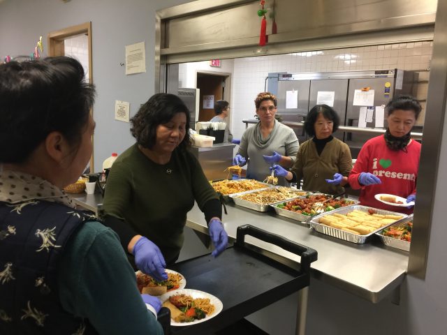 施敬芳、张东红、王洪花、罗丽霞、吕雅丽、刘丽娟 等几位社区朋友主动请缨,承担了义工的任务。镇长James Fife亲自前来问候社区老人和义工们,两位议员Jesus Huaranga和Francisco也亲自为老人端送中国菜肴以表亲切的问候。