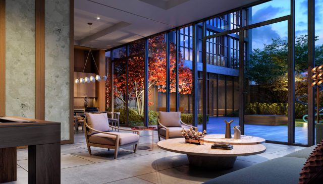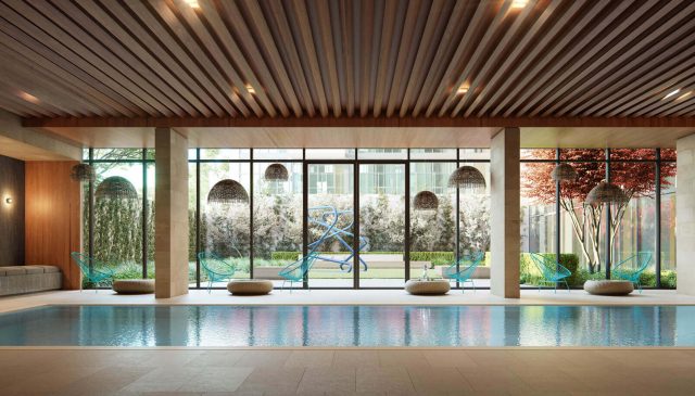 GALERIE的13,000平方英尺的设施包括一个充满艺术气息的大堂,全尺寸的室内游泳池通向由史蒂文·雅瓦尼安设计的园景中央庭院,并配有艾伦·格拉特的曲线雕塑。