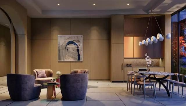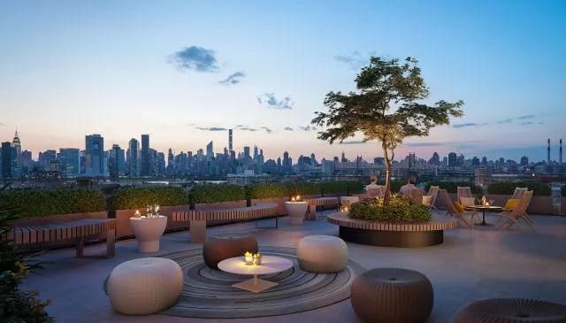 健身中心和运动工作室;带有从MoMA PS1书店中选择的书籍的图书馆、休息室、派对室、儿童游戏室、宠物水疗、婴儿车存放、和宽敞的屋顶露台,设施一应俱全。