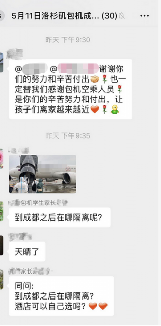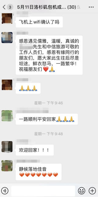 登机后微信消息响个不停,原来是专门组建的包机家庭群里,家长和家属们纷纷询问是否平安登机,从包机成行开始客服就在群中,24小时不间断的解答大家的疑问,现在大家可以完全放心了。
