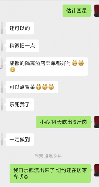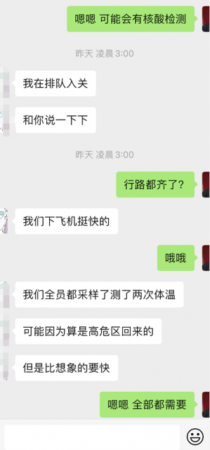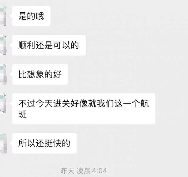玥儿把大家送上飞机后,一直心系航线,一直密切跟踪全过程,直至安全降落到达中国。看👇,收到了乘客发来的安全抵达成都的消息,并且顺利进入酒店,开始隔离,玥儿才开始睡安心觉。