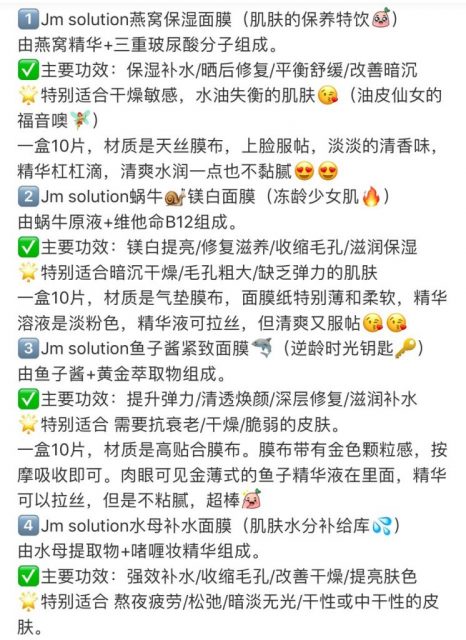 就目前小娅亲测过的那几款也真的是爱不释手,比如金蚕丝,白蚕丝,蜂蜜,深水炸弹和珍珠面膜都感觉很不错的,具体怎么pick,可以根据仙女们最近的皮肤状况和自身需要来进行选择哦!
