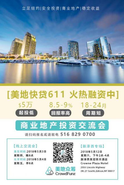 如果您对布鲁克林八大道与美地众筹最新项目“美地快贷611”感兴趣,欢迎您参加美地众筹精心策划的线上线下投资交流会。