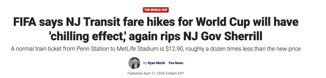 新泽西州长米基·谢里尔明确表态,新泽西不会让普通通勤者为世界杯埋单。“如果国际足联不承担这笔费用,我们也不会把成本转嫁给每天依赖公共交通的居民。”