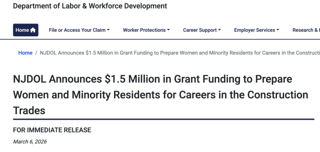 这笔资金来自 NJBUILD (New Jersey Builders Utilization Initiative for Labor Diversity) 计划下的 “建筑行业女性和少数族裔”(Women and Minorities in Construction, WMIC)项目。该项目的核心目标,是通过提供培训和职业准备机会,帮助参与者突破进入建筑行业时面临的经济和技能障碍。