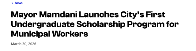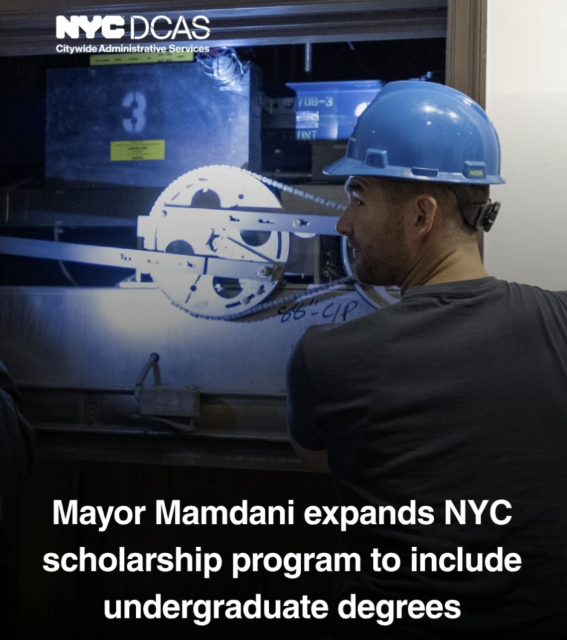这项新政的核心,是将已有60多年历史的“市长研究生奖学金计划”全面升级,首次纳入本科阶段教育。3月30日,市长佐兰·马姆达尼与市行政服务部(DCAS)专员北濑梦共同宣布:从2026年秋季开始,纽约市全职市政员工将有机会通过“市长奖学金计划”,在包括Columbia University School of General Studies、New York University、City University of New York等院校免费攻读本科及研究生学位。