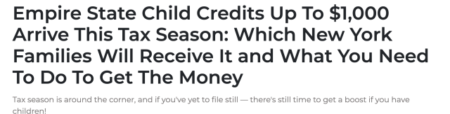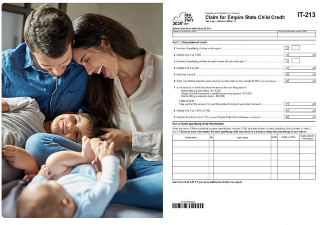 除了教育福利,纽约州今年在税收政策上也带来了“真金白银”的变化。2026报税季起,“Empire State Child Credit”迎来重大升级——由“部分可退”改为“完全可退”。这意味着,即使家庭收入较低、无需缴税,也可以直接获得现金退款。